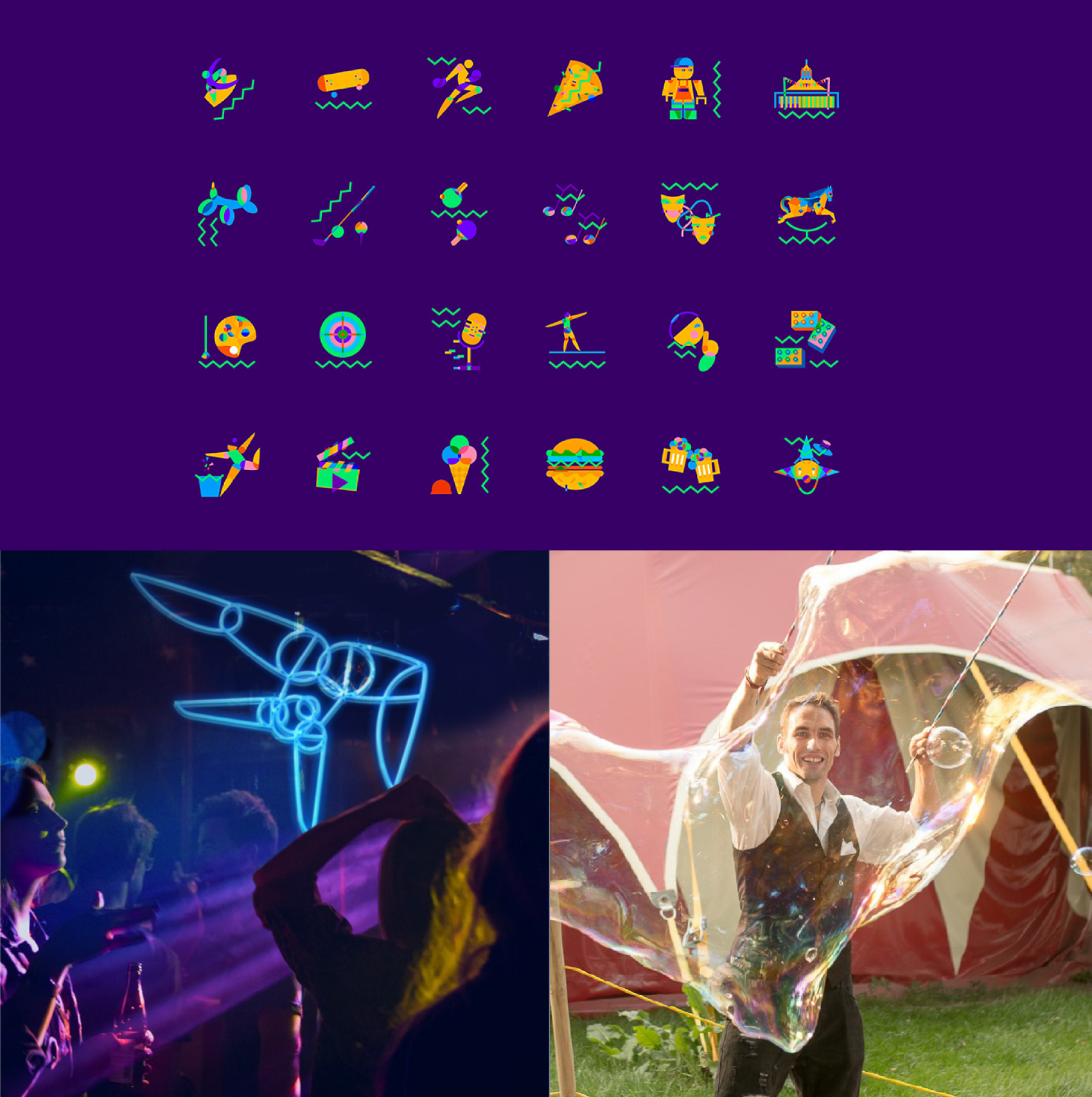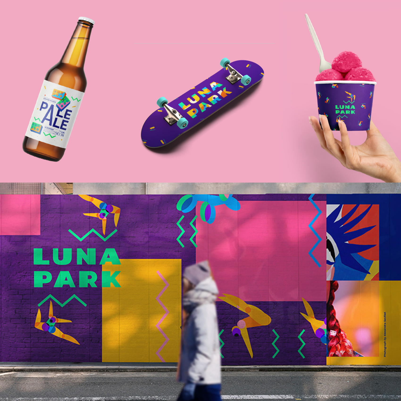 Drawing inspiration from the whimsical world of Alice in Wonderland, we embarked on a creative journey. Mirrors, zigzags, and vibrant colors became the visual language that conveyed the enchanting atmosphere of Lunapark. The zigzag roof over the entrance, coupled with a circus-inspired acrobat as the brand hero, formed the foundation of the distinctive logo. To enhance the overall brand experience, we developed a consistent and balanced visual identity, incorporating kaleidoscopic colors to evoke a sense of childlike wonder.