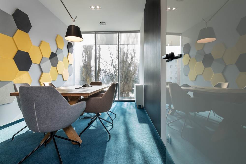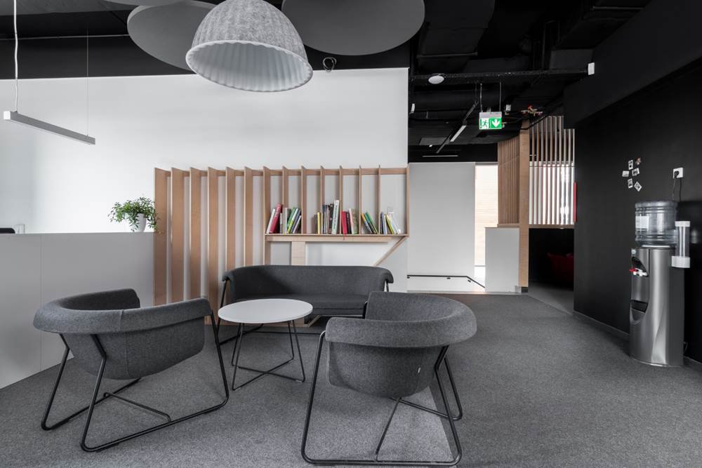 The designers had no easy task. The first important element they focused on was functional rooms. Based on a long list of interactions between employees we provided, teams had to design areas that will meet any of the daily tasks. Certainly, that’s why they created a “core” with telephone boxes and rooms for special tasks in the middle of the office space. One of the most interesting zones is the project area – Univers. It’s a room with open space, where desks heights are adjustable. The plan was to make a dynamic, standing area, where employees can meet quickly to discuss projects. Moreover, conference rooms and phone booths were additionally soundproofed by 3D wall panels.
