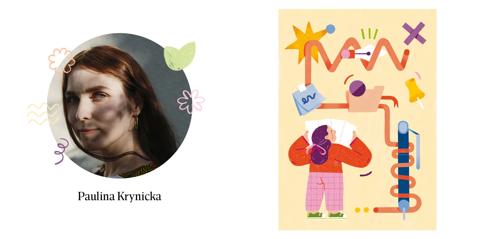 An illustrator and designer based in Poland, with a degree in graphic design from the University of the Arts in Poznań and a background in pedagogy. Her diploma projects have been recognized in competitions such as Design32 and Project of the Year. She creates works full of warmth and humor. She works at Admind Branding & Communications as a Graphic Designer.